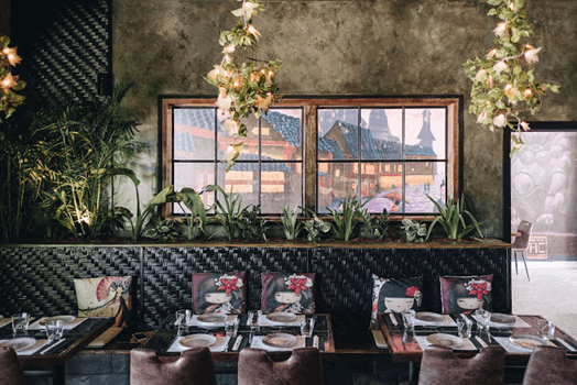 Decorated with relics from various parts of Southeast Asia, and the lighting is soft with red hues. Upon entering through the cherry blossom doorway, you’ll be greeted by tantalizing oriental aromas.